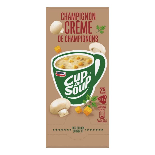 Unox Cup-a-Soup Champignon Crème is de kampioen onder de crèmesoepen. Bereid met de beste ingrediënten, zorgvuldig gedroogd en op smaak gebracht met kruiden